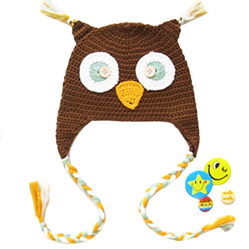 KF Baby offer KF Baby Animal Beanie Hat, with Ear Flaps and Braids, Owl, Brown + FREE Gift of 4 Pinback Buttons. This awesome product currently limited units, you can buy it now for , You save -